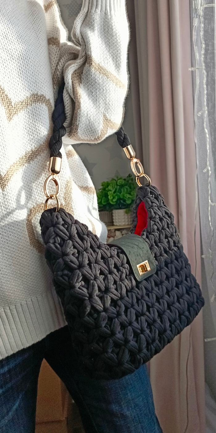 Всем тепла и уюта! Сегодня, когда за окном светило яркое солнышко и было -27°🫣, доедая последний новогодний салатик, я наконец собралась с силами и сделала фото сумочек, которые я вязала последний месяц🤗 Сумочки из трикотажной пряжи (100% хлопок)