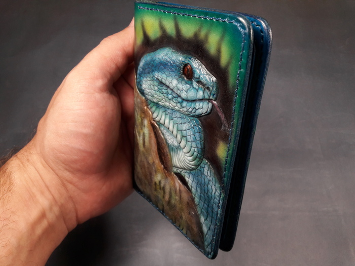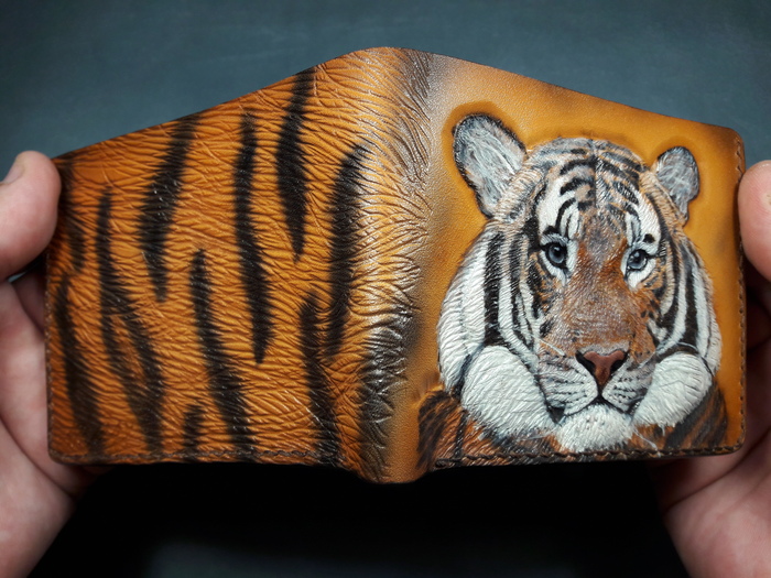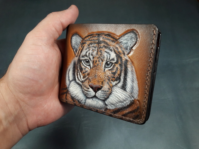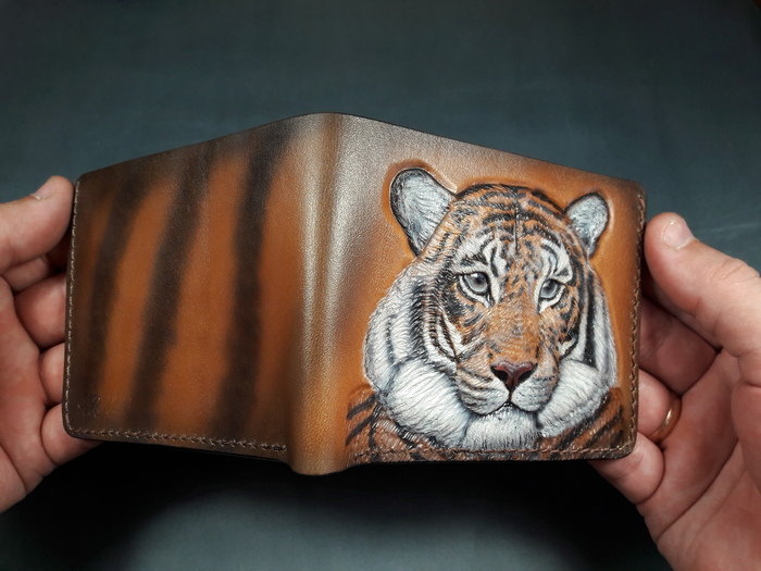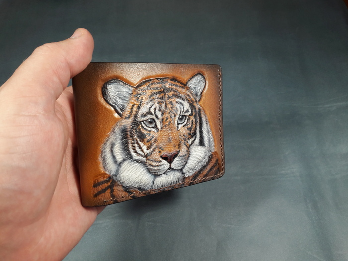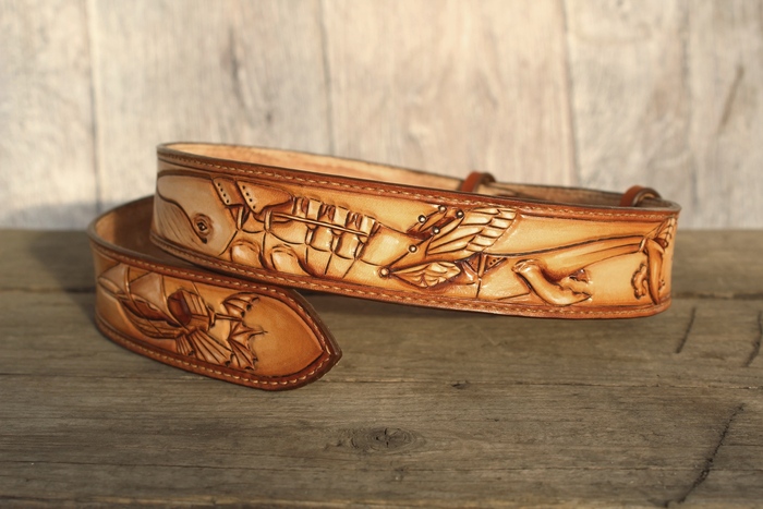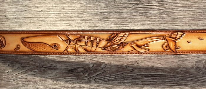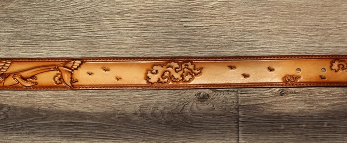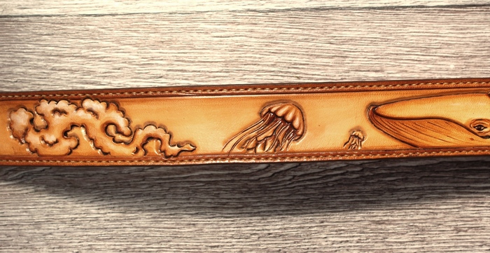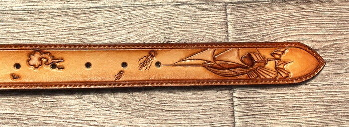Рисунок выполнен в технике карвинг, окрашен профессиональными проникающими красками для кожи(не стираются и не линяют).