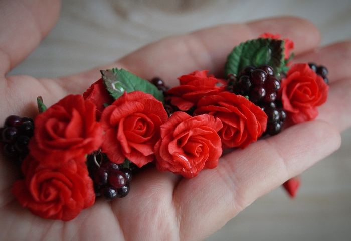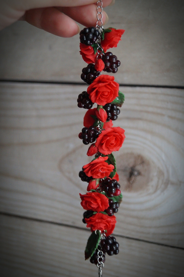 Браслет с красными розами и ежевикой, полностью ручной работы