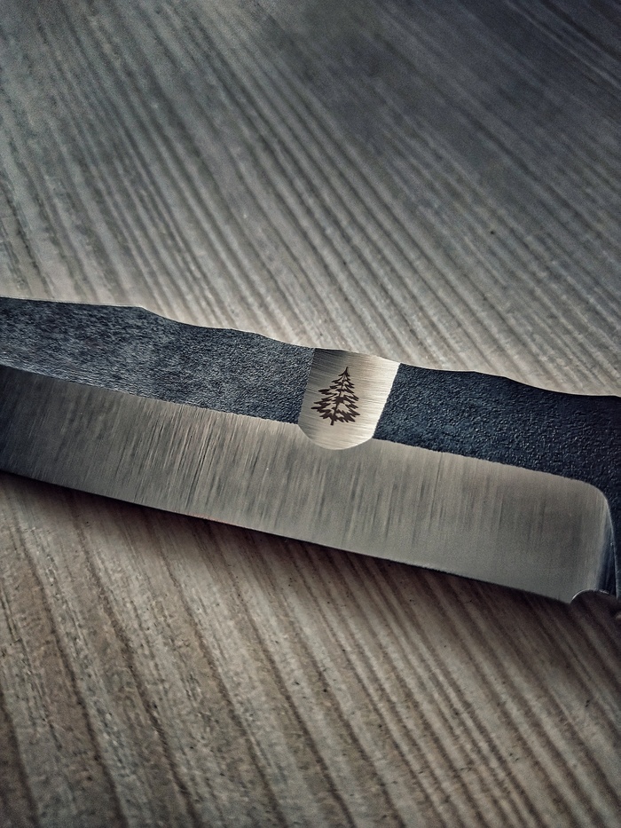 Так же кухонный нож из наверное AUS10co. В мастерской лежал испорченный бланк кухонного ножа, толи AUS10co толи N690, непонятно. При слесарке так же не определил точно сталь, все было уже шлифованное. Но в любом случае и та и та хорошо себя показывает. По искре умею определять, но тут что то не получилось. А на глаз, на вкус, на отражение и на чувствование не умею определять)