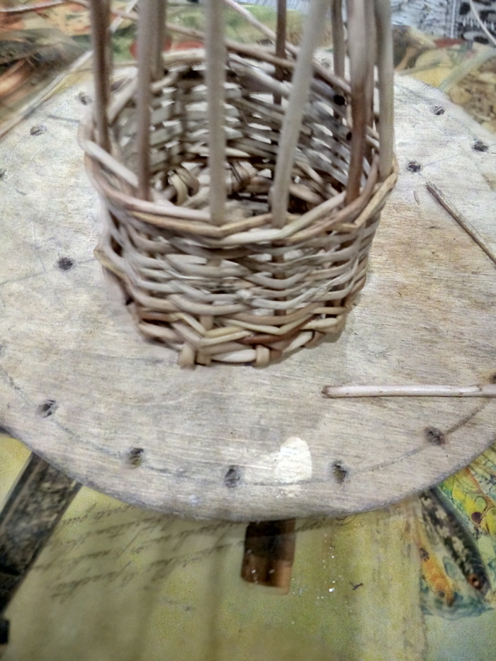 Фото из предыдущего поста. Только здесь, обруч у нас будет являться верхом корзины, а не донышком. Плести будем «вверх ногами,»