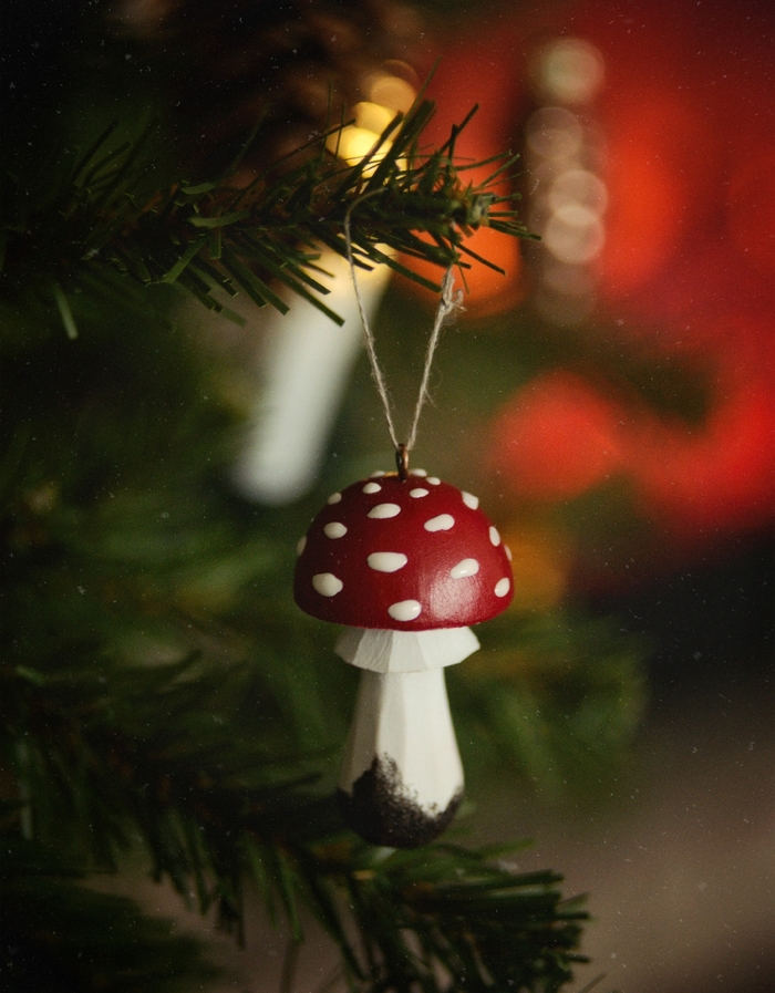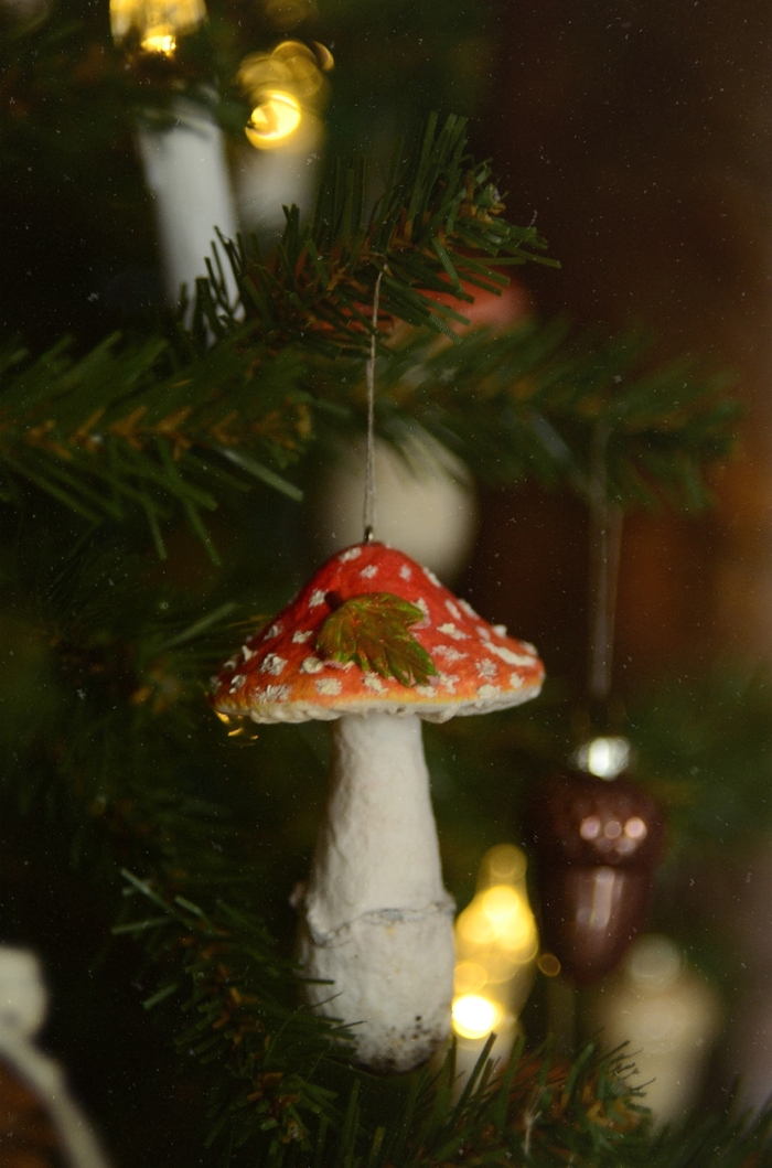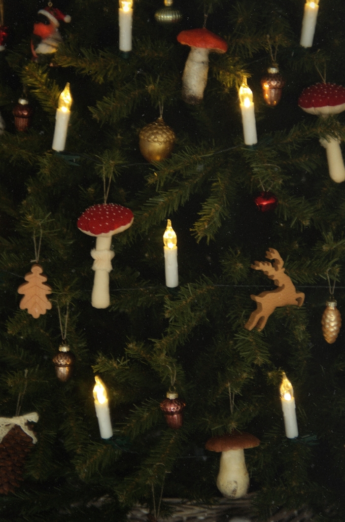 Здравствуйте! В этом году я снова решила нарядить ёлку в лесном стиле. На ней в основном деревянные и ватные игрушки, немного стеклянных. Из дерева делали мы с мужем, а ватные грибочки - работа свекрови☺