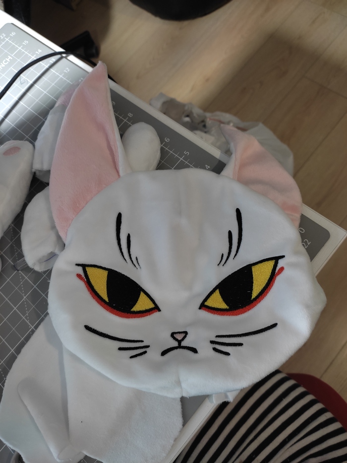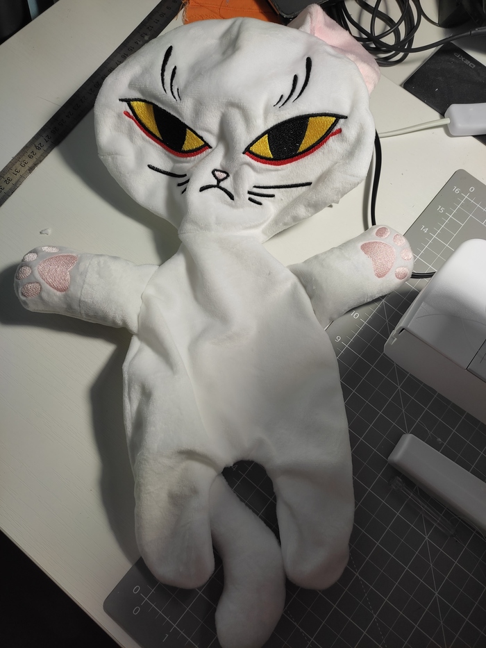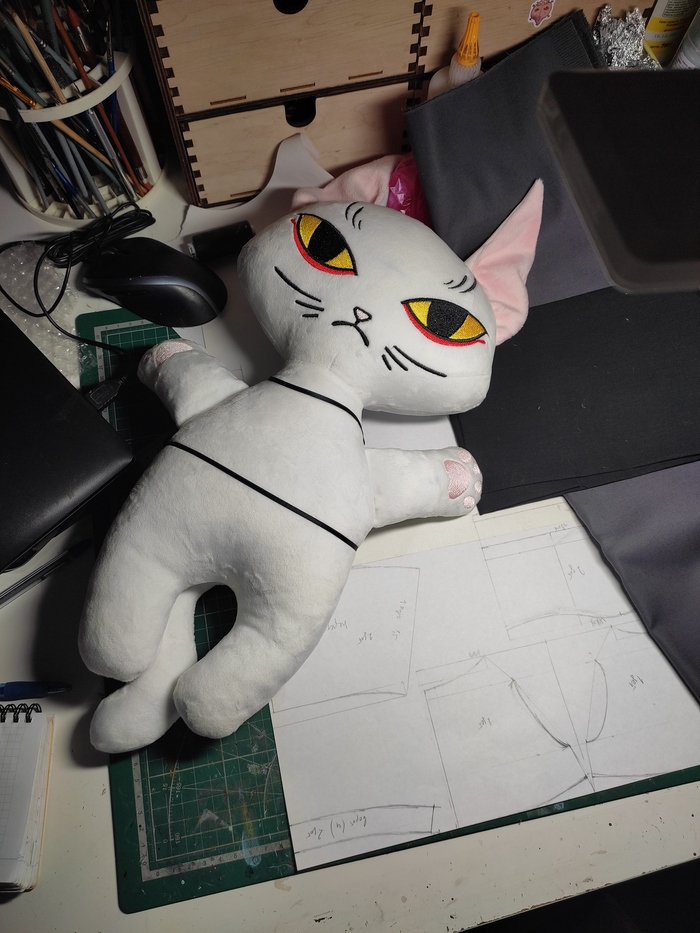 И вот, сердитый китайский котэ готов. Плюшевый, примитивный по форме, зато в костюмчике.