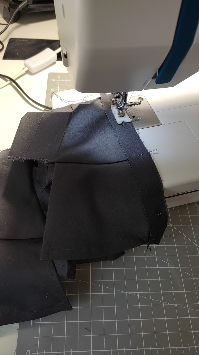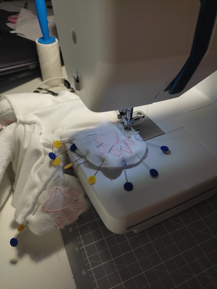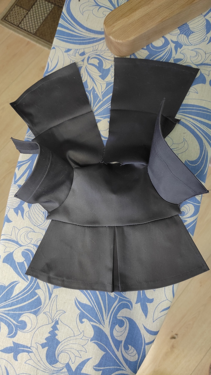 Далее забрала готовую вышивку, достроила выкройку, раскроила детали, более-менее определила порядок работы и начала шить. Шила на машинке, естественно, не руками же такое шить.