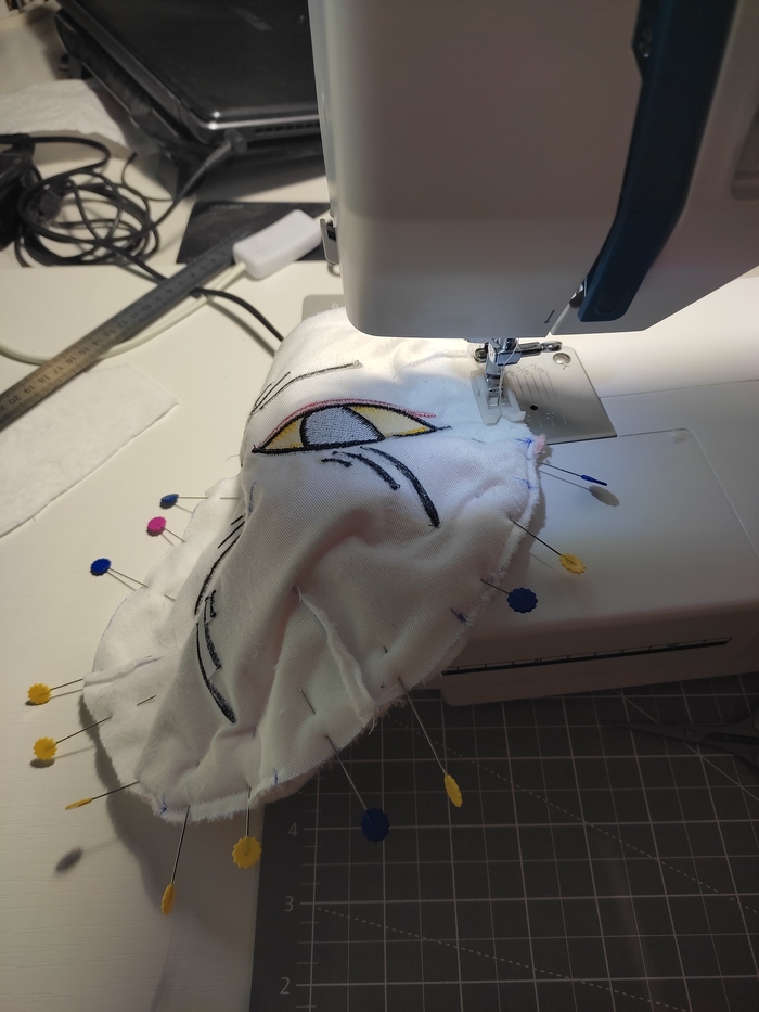 Окей, подумала я, не впервой. Поскольку плюшка должна быть прям плюшкой, мордочку решили вышивать. Отрисовала ТЗ, отдала мастеру с вышивальной машиной. Не вручную ж это вышивать.