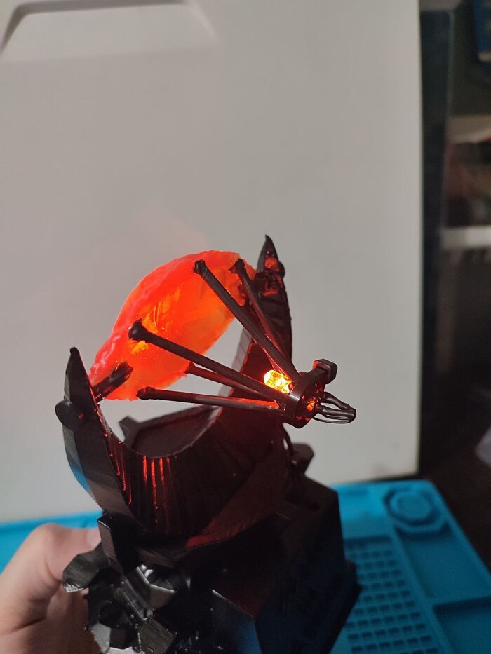 В общем идея не новая, но попросили сделать верхушку на ёлку в виде Ока Саурона, с помощью 3д печати. На Пикабу один добрый человек уже поделился готовой 3д моделью, за что ему большое спасибо. Однако была задача добавить подсветку, чего изначальная модель не сильно предполагала.