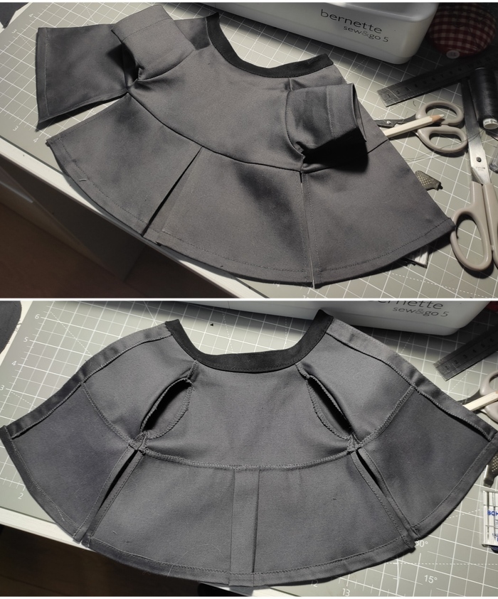 Сняла мерки, построила выкройку, раскроила плащ, а дальше шить-отпаривать-шить-отпаривать до готовности. Рисунок на плаще решили не делать, поскольку с котом будут активно играться.