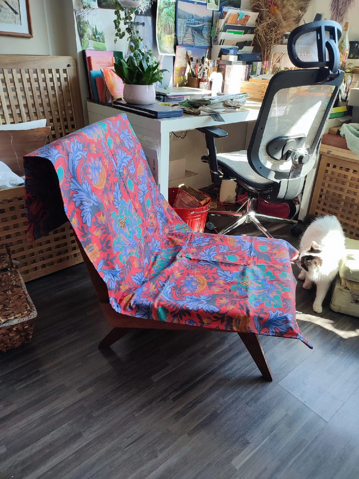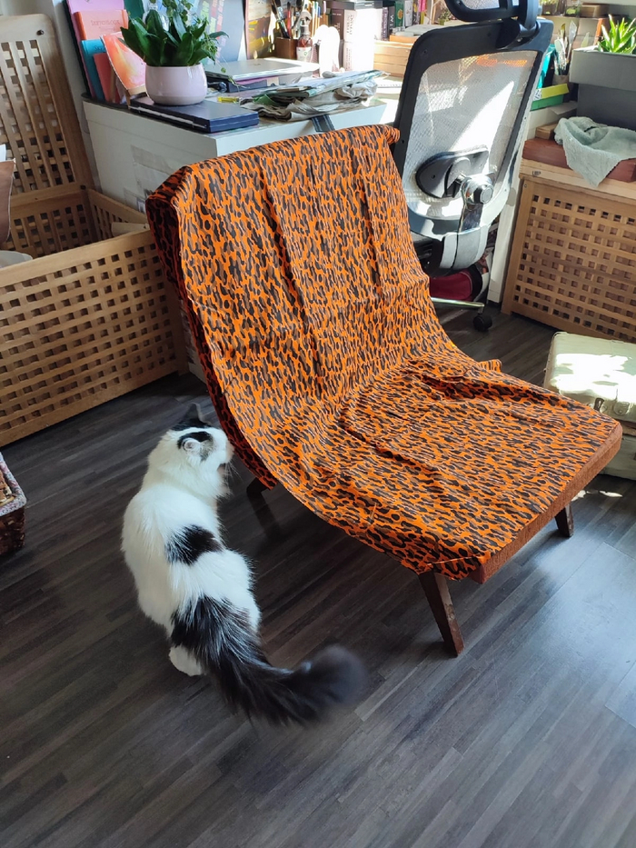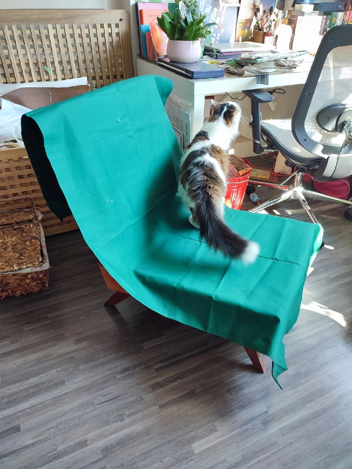 Далее накалывала булавками детали на ткань, вырезала, сделала пару швов на машинке и перетягивала. Сняла хоум-видео процесса, но часть работы не попала в кадр, забыла снять паузу) экшен так себе, но видно, что коты старались помогать изо всех сил