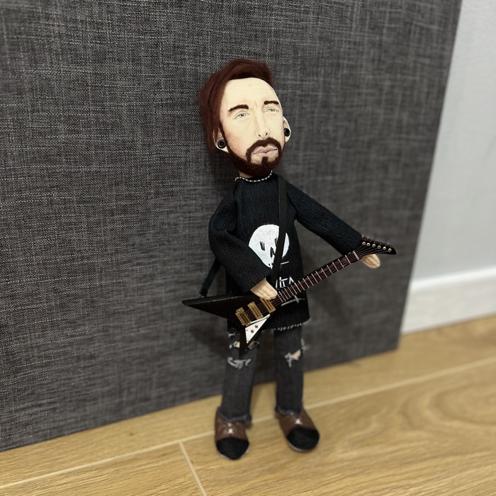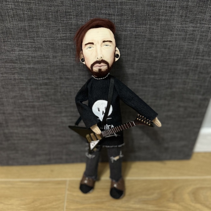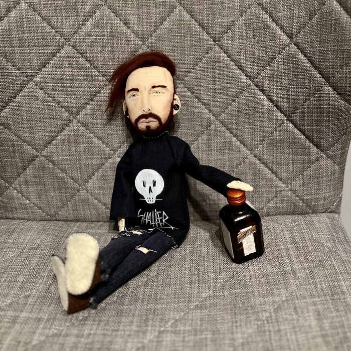 Рост 34 см, ткань - хлопок, набивка - синтепух, волосы - тонкая шерсть. Одежда - джинс, обувь - фетр.