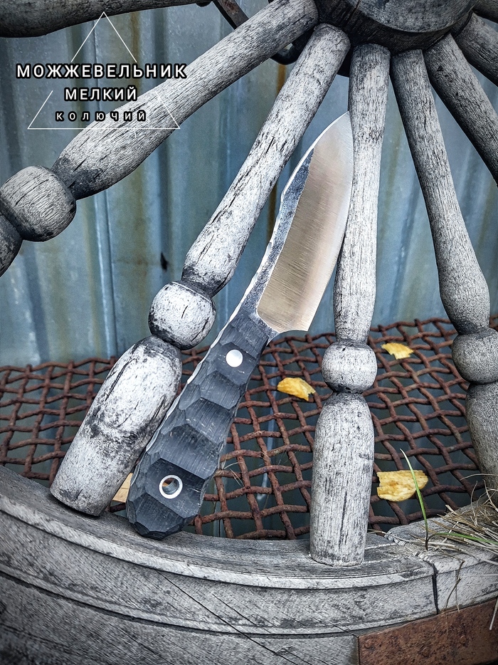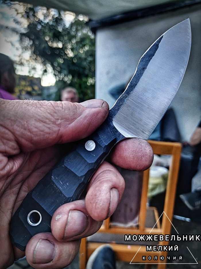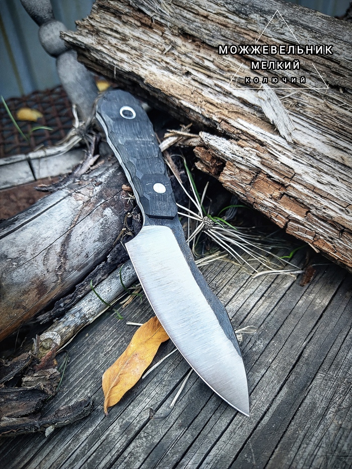 Приветы. На этот раз прям мелкий мелконож, назначение его- EDC и лёгкая работа по продуктам. По параметрам: 95Х18, общая длина 170, клин 85, на рукояти именно здесь чёрная бумажная микарта. Спуски вогнутые, подвод тонкий. Прям скальпель))). Бонусом свежевытащенная жареная мелкокартошка, ыыы, где теперь сентябрь)))