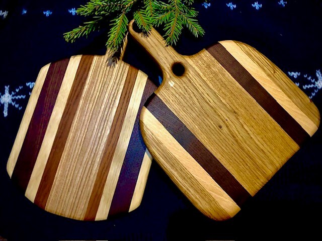 Были сделаны две досочки небольшого размера путем склейки (обычная история) из дуба, бука и термоясеня. Форму определял исходя из конкретной заготовки.
