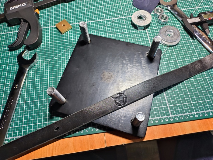 Сделал вот такой простенький пресс, 2 листа по 10мм болты 16 диаметр, размер 200х200мм.