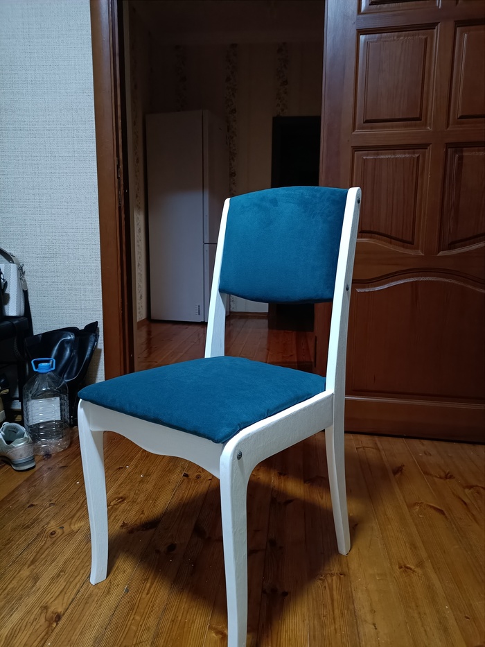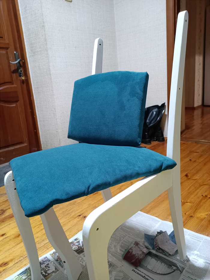Далее зачистка, грунтовка и краска каркаса, перетяжка сидений: