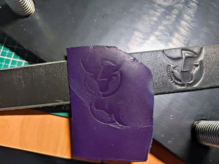 Ременную заготовку 2.5мм хромку клеймит на ура, 1.4мм хромку уже сложнее,думаю просто нужно подольше оставить)