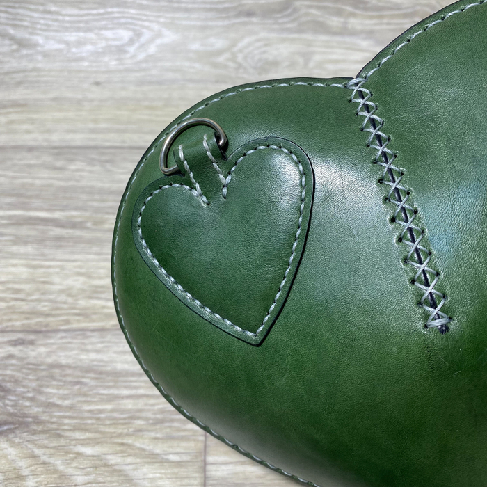 • Прошито ручным седельным швом вощеной нитью, обработано водоотталкивающим кремом и с тонировкой под патину.