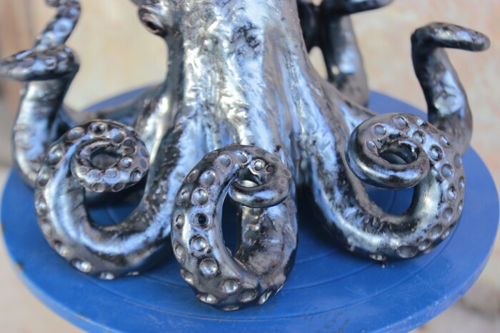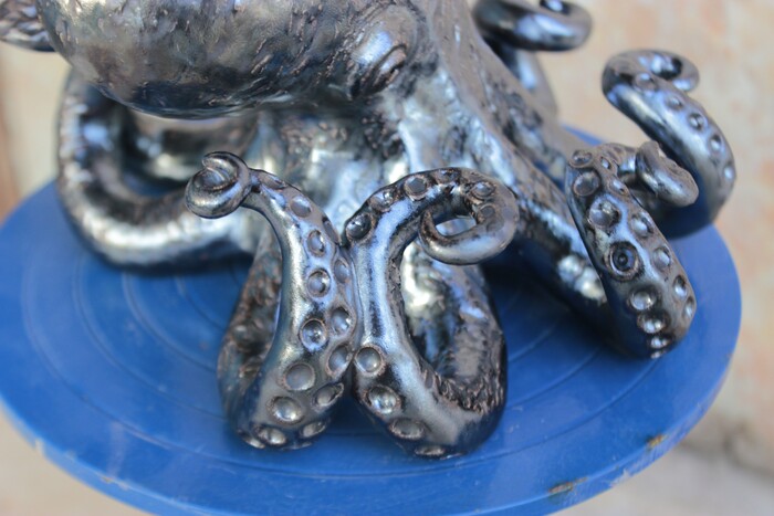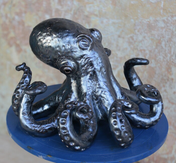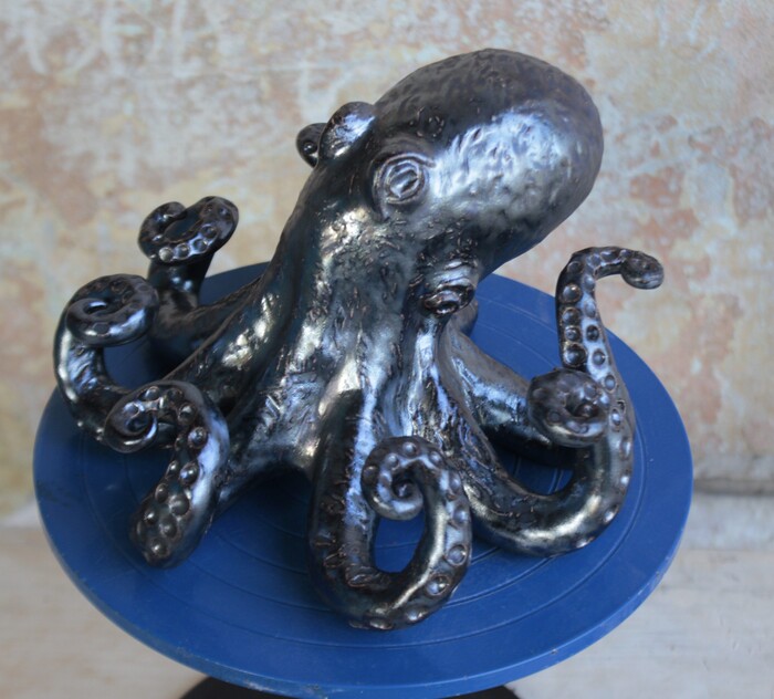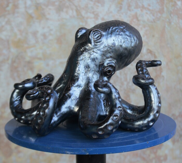 Зверь вылеплен вручную из керамической массы МКФ и декорирован эффектарной глазурью "Нефть". Обжиги 1000/1100 градусов.