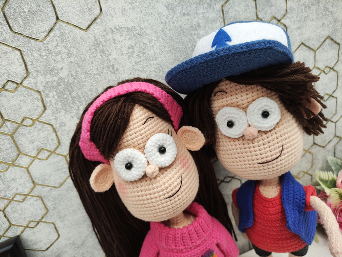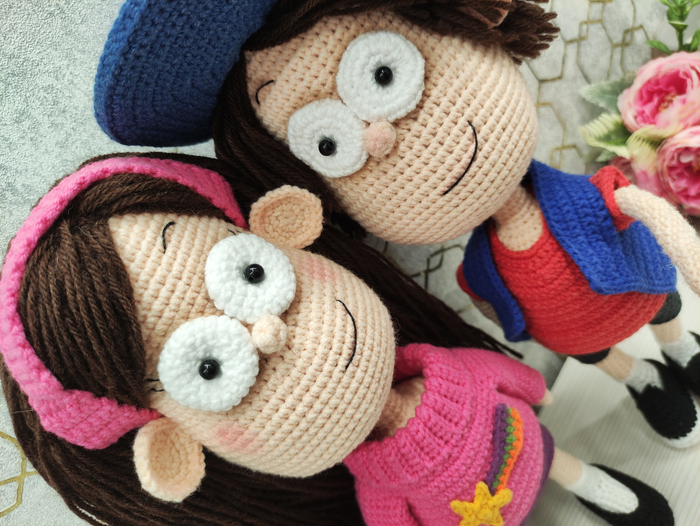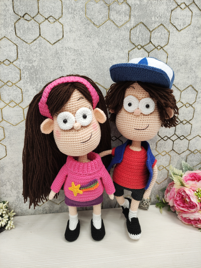 Диппера делала уже без каркаса. Одежда (кроме жилетки) не снимается. Пряжа хлопок+акрил. Наполнитель синтепух. Волосы из пряжа акрил+шерсть. Высота вместе с кепарем 33,5 см.