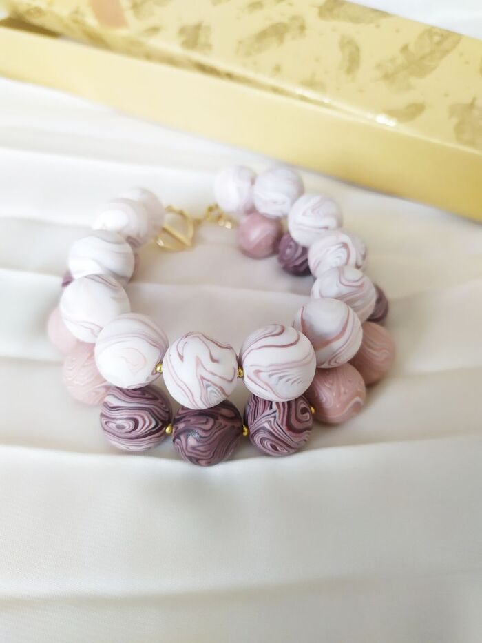 Двухрядные браслеты из полимерной глины ручной работы. Бусины-шарики