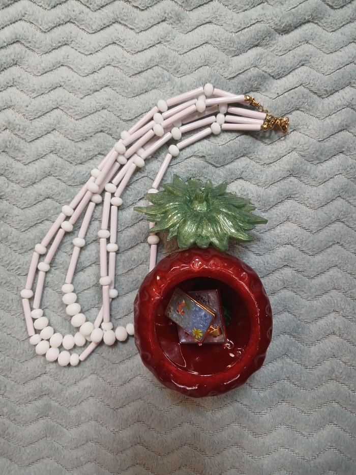 Рисунок покрыт эпоксидной смолой, фурнитура бижутерия. Диаметр кулона 4 см.