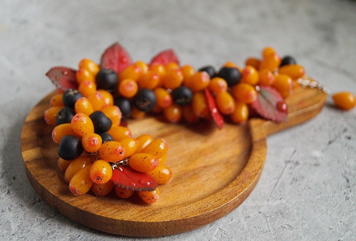 Мне хватило ягод, чтобы получился комплект - браслет, серьги и кулон.