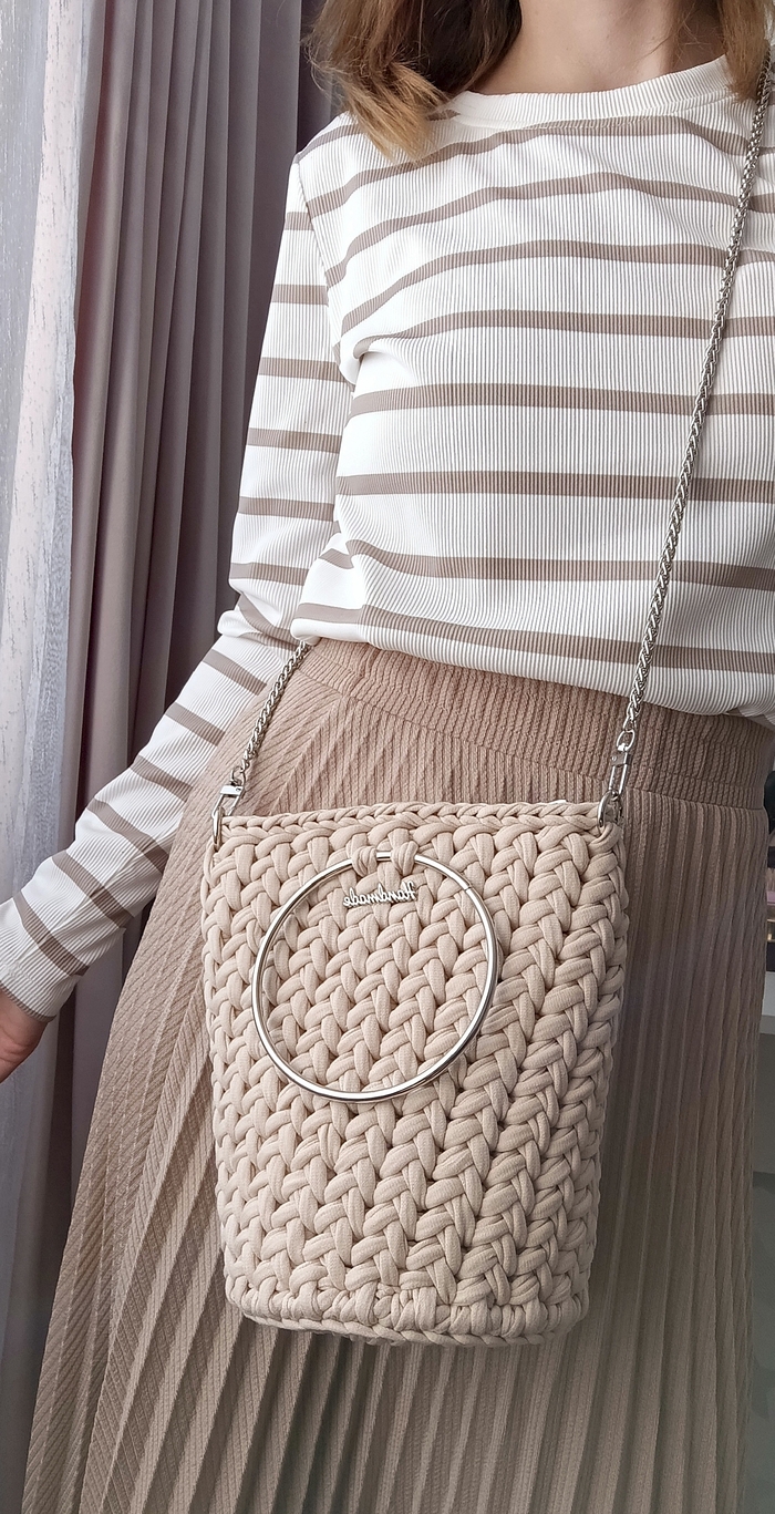 ✅ Вязаная сумочка, цвет бежевый. Сумочка замыкается на молнию.