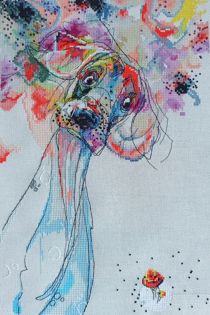 Ещё весной начала вышивать эту офигенскую собаку от RTO, но потом поначинала кучу других вышивок и, в итоге, эту закончила только сегодня.