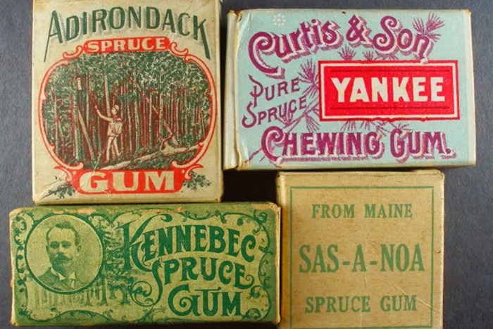 В Северной Америке коренные народы жевали смолу елового дерева, и эта практика продолжилась и у европейских поселенцев, которые пришли следом.
