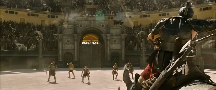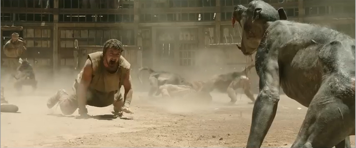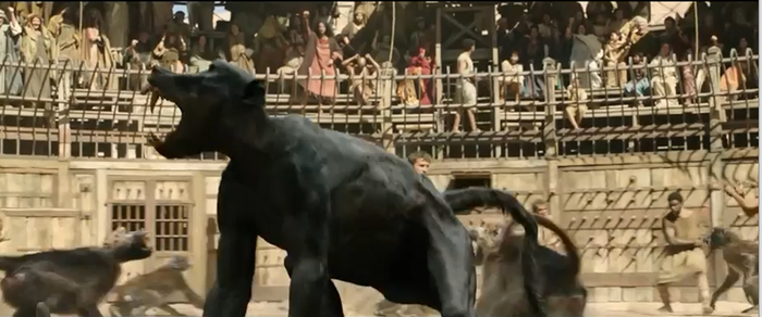 Смотря на эту убогую битву рабов с компьютерными обезьянами, припомнилось мне, как эпично Максимус кромсал гладиаторов, при своём первом появлении на арене, в то время как здесь, происходит какой то испанский стыд. Дальше что будут боевые носороги и акулы в Колизее?