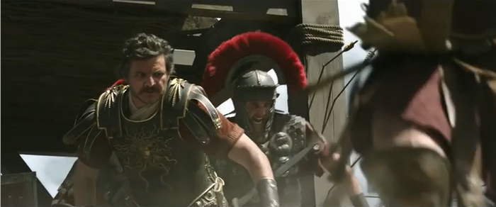 Тогда генерал Марк Акаций, лично, ударом кувалды по механизму, опускает мост. После этого, командующий войсками, в первых рядах бежит в атаку, выкашивая защитников города целыми пачками. Кто то скажет, что то же самое было в первом фильме, где генерал Максимус вел конницу в атаку лично.