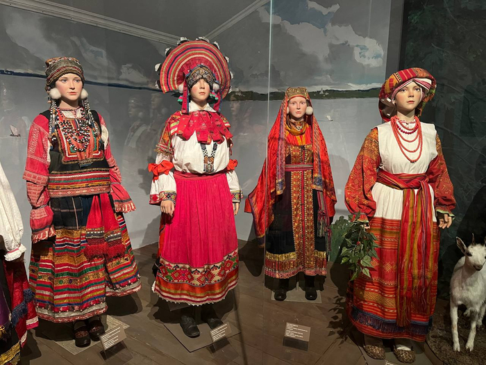 Я посетила музей сословий России и полюбовалась на эту коллекцию. Некоторые манекены будоражили своей реалистичностью, как эта дама в середине в голубом сарафане.