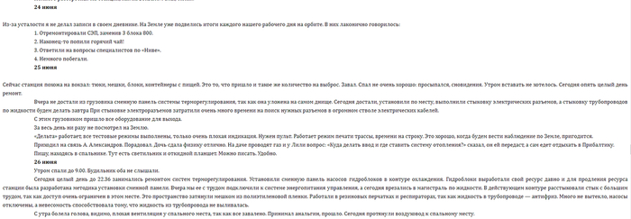 Разумеется такого бреда в реальности не было, космонавты работали на станции по обдуманному плану. К 23 июня многие работы по реанимации станции были выполнены и в этот же день была произведена стыковка с грузовым кораблем Прогресс, на котором были доставлены продовольствия, вода, а так же необходимые для дальнейшей работы детали.