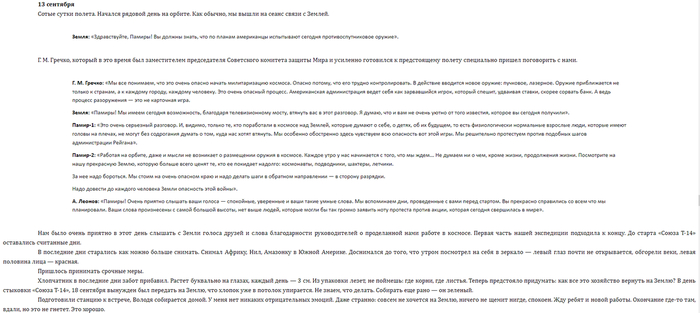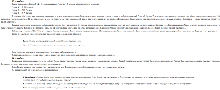 Дальше Алехину сообщают, что его жена родила девочку и он стал папой, после чего оба космонавта наблюдают странное свечение, которое до этого наблюдал Федоров, а на ЦУП-е начинают бурно радоваться спасению космонавтов и станции. Под песню Высоцкого фильм заканчивается. Ну что, подведем итоги. В реальности двое космонавтов работали на станции до 18 сентября. 17 сентября стартовал «Союз Т-14», успешно пристыковавшийся к станции на следующий день.