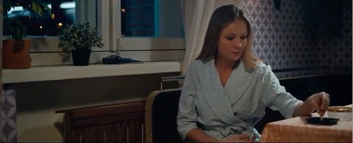 Тут же в фильме, после приключением с водопадом а космосе, космонавты осушили почти всю воду на станции при помощи тряпок, а теперь проверяют свое здоровье и мерят температуру. Оказывается приняв незапланированный душ, оба космонавта сильно простудились, но при этом они друг другу врут что с ними все нормально.