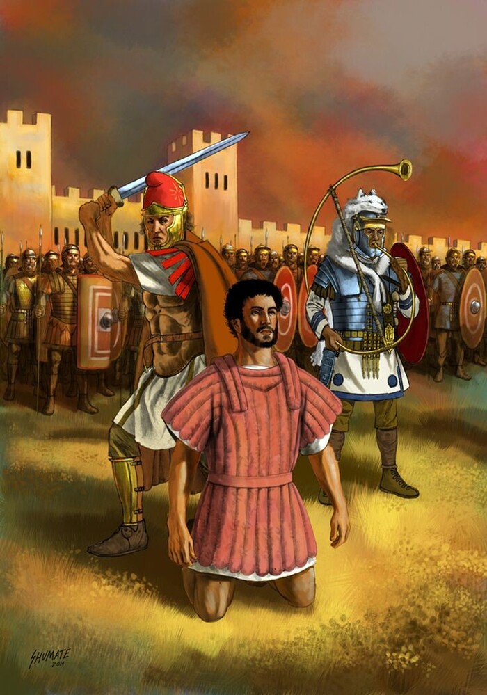 35 зачинщиков вытащили на середину площади, сорвали с них одежду, привязали к столбу и высекли. Тут надо пояснить, что римского гражданина нельзя было физически наказывать, сечение в данном случае носило ритуальный характер и означало, что ти люди больше не граждане. После этого всех обезглавили.
