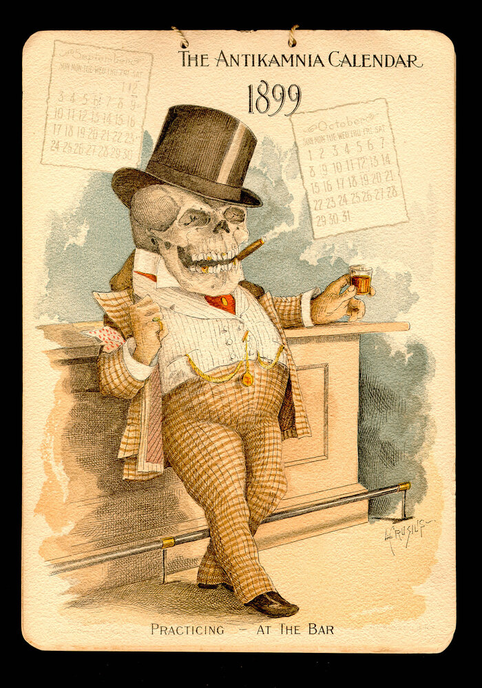 30 рисунков, вдохновлённых «танцем смерти» Круциуса, были использованы для создания календарей Antikamnia Chemical Company на 5 лет — с 1897 по 1901 год. У них была довольно агрессивная маркетинговая кампания, в рамках которой календари (предназначенные для медицинского сообщества), а также открытки и наборы образцов распространялись среди врачей в США и за рубежом.