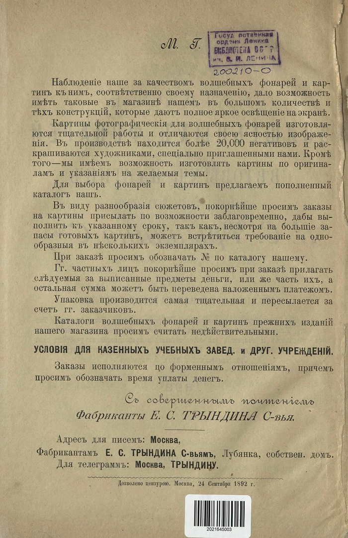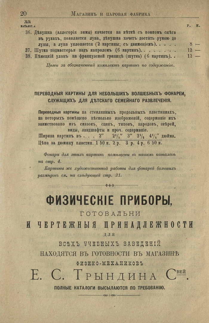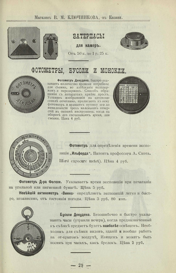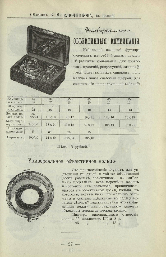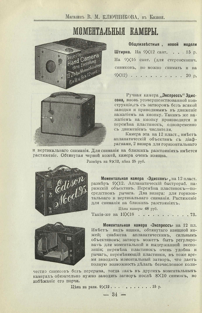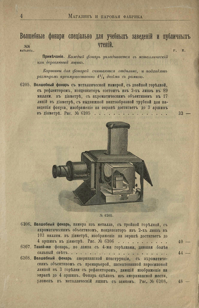 Прейскурант Камеры, объективы, вспомогательные приборы и принадлежности для съемок 1908 года