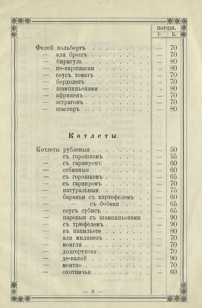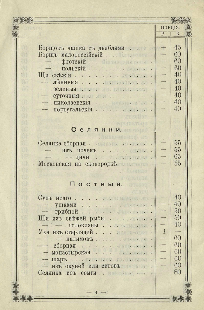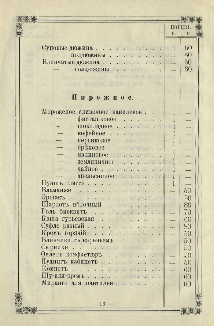 Прейскурант кушаньям ресторана 1-го класса в Архангельске 1902 года
