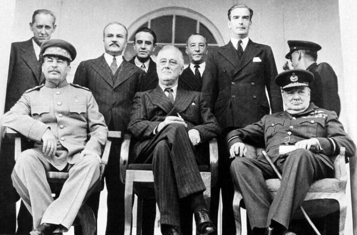 28 ноября в Тегеране открылась конференция стран-союзниц, на которой Сталин, Черчилль и Рузвельт обсудили окончательную стратегию ведения войны против Германии, а также договорились об открытии Англией и США второго фронта в мае 1944 года (впоследствии дата была перенесена на 6 июня 1944 года). На конференции также обсуждался вопрос об послевоенном устройстве мира. Стороны договорились закрепить за Советским Союзом право присоединить к себе части Восточной Пруссии в качестве контрибуции. В отношении Польши, часть территории которой СССР присоединил к себе в 1939 году, было принято предложение Черчилля о том, что потерянные поляками земли Западной Белоруссии и Западной Украины компенсируются им за счёт территории Германии. По вопросу о включении прибалтийских республик в Советский Союз, которое уже фактически произошло в 1940 году, стороны договорились о том, что в этих странах должен был пройти новый плебисцит, но без международного контроля. Это фактически означало одобрение вхождения прибалтийских стран в состав СССР со стороны Великобритании и США. Что же касается судьбы самой Германии, то по этому вопросу стороны не пришли к единому мнению. Рузвельт и Черчилль выступали за разные формы раздробления Германии, Сталин же настаивал на сохранении единого государства. Не договорившись, лидеры трех держав решили отложить этот вопрос на потом.