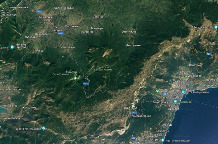 В глубине северного склона Ай-Петринского горного массива находится самый глубокий каньон полуострова — Большой каньон Крыма. Его максимальная глубина достигает 320 метров. Дюжина пещер объявлены памятниками природы местного значения, в том числе Скальная, Кристальная, Жемчужная, Геофизическая, Каскадная и другие.