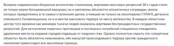 При этом сам факт расстрелов на специальных полигонах НКВД (в Южном Бутово в Москве, в районе Ржевки в Ленинграде и т.д.) отрицать невозможно.