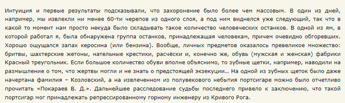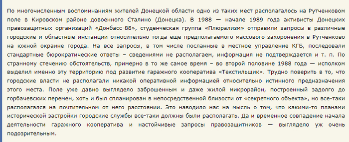 Прочитал статью The.Red Ghost "о якобы массовом захоронении жертв репрессий под Донецком на Рутченковом поле...". С мнением автора в основном согласен.