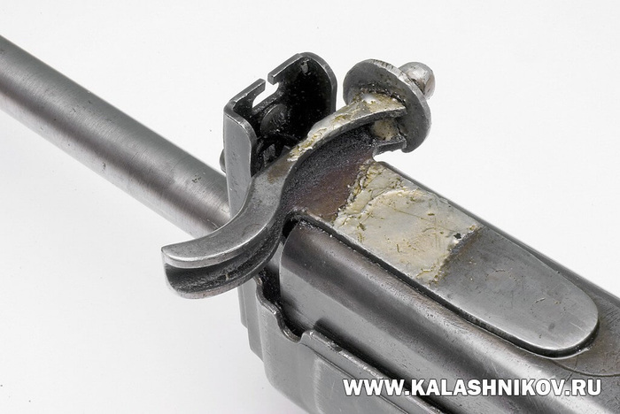 7. Расположение переводчика огня — предохранителя с левой стороны неудобно при ведении прицельного огня, т. к. приходится при этом отрывать левую руку.