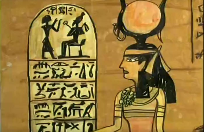 Это был пересказ древнеегипетского мифа о том, как Ра чуть не истребил людей в наказание за богохульство, но в последний момент одумался, и снова воцарился на земле мир. Рисовка, стилизованная под древнеегипетские иероглифы, специфический саундтрек — смесь народных мотивов и лёгкой электронщины — отпечатались в моей памяти навсегда.