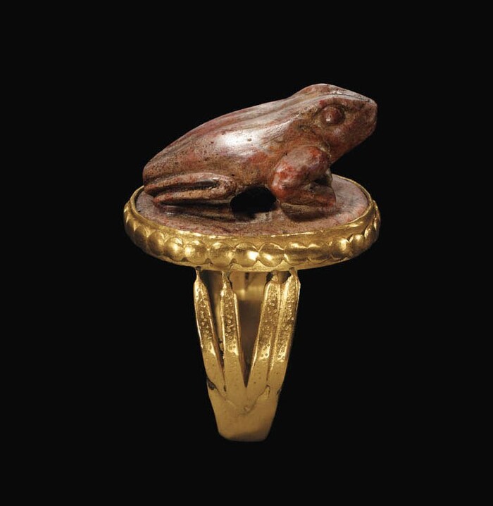 Древнеегипетское кольцо с агатовой лягушкой, датированное 664 - 30 гг. до н.э.