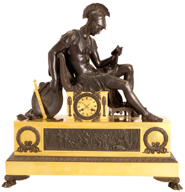 Часы каминные «Бдение Александра Македонского». Франция. Около 1820 г. Бронза, сталь, литье, чеканка, патинирование, золочение.
