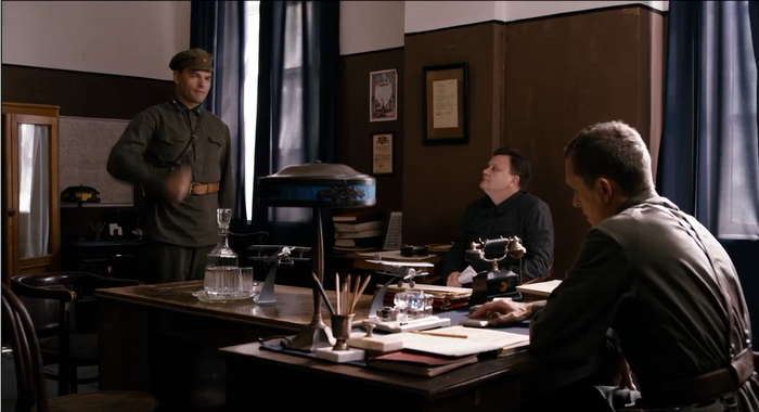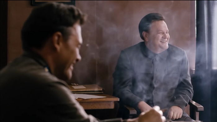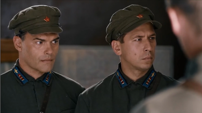 Прибыл значит Чкалов с семьей не долго, потому что его вызвали в часть. Заходит он значит к командиру, а там у него сидит тупой НКВДшник из фильма "Снайпер: Оружие возмездия". И надо же такому случится, что этот актер тут играет чекиста, а точнее сразу двух-братьев близнецов, которые оба являются НКВДшниками.