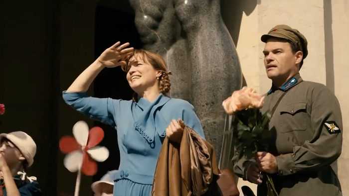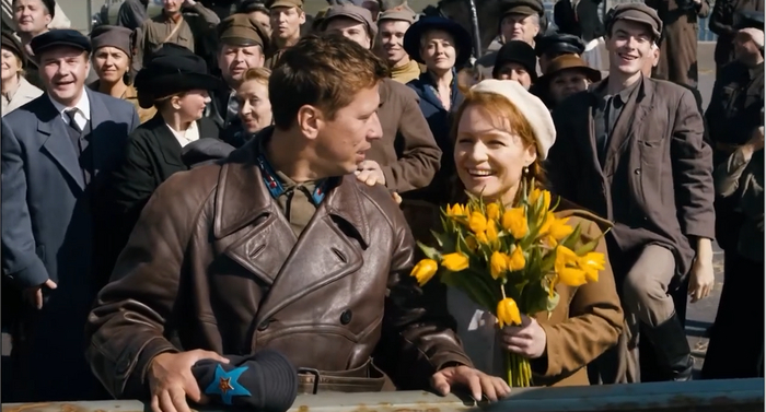 Ну и в параде воздушной техники в Ленинграде, Чкалов так же участвует, по его словам ради Ольги, ведь она ему так нужна, так нужна, что он без неё жить не может. У Ольги вроде бы тоже есть какие то чувства к Чкалову, поэтому он предлагает ей решать тут же, с кем она будет, с ним или с с Сашкой.