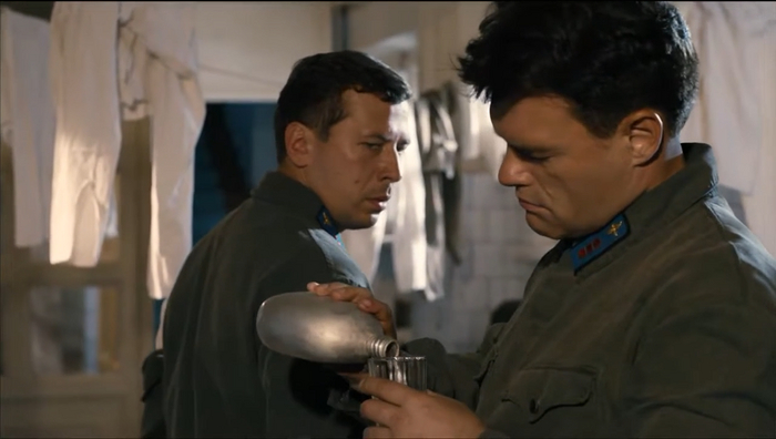 В дело вмешался Гроховский, который предложил, сначала выпить спирту, а потом уже стреляться, а то это не дело стрелять на трезвую голову. Пока Чкалов наливал себе из фляжки спирту, Гроховский пытался отговорить друзей от их безумной затеи.