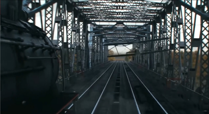 Когда пролет практически был закончен, Чкалов увидел как навстречу самолету несется поезд, с которым он чуть не столкнулся. Столкновение с поездом Чкалову удалось избежать при помощи лихого манера, в результате которого у самолета было повреждено шасси, и снесена вышка у моста. На этом трюке вторая серия заканчивается.