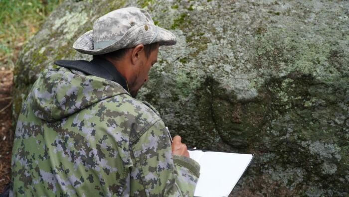 Артефакт представляет собой человеческое лицо, высеченное в камне. О находке было сообщено в департамент по ЧС Акмолинской области и в местный краеведческий музей. Далее о находке стало известно ученым не только из Астаны, но даже и дальнего зарубежья. Сотрудники ЧС провели гостей к памятнику из прошлого.